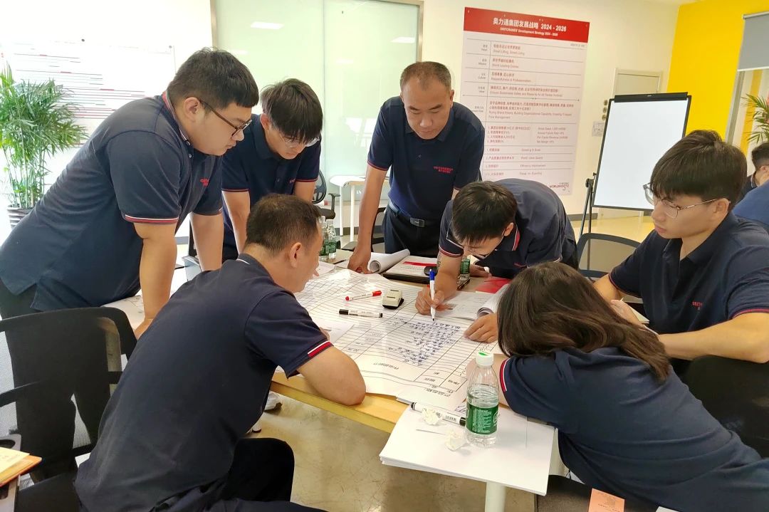 6月盛夏,IM电竞生产车间,不同小组的员工们围聚在各自工段前,相机拍摄着员工作业视频,手指划过物流路径图,讨论声此起彼伏——这并非日常生产,而是一场“精益思想”向“全员行动”转化的实战赋能培训现场。面对效率提升的迫切需求,奥力通选择用最接地气的方式,让一线骨干成为“精益改善先锋”。